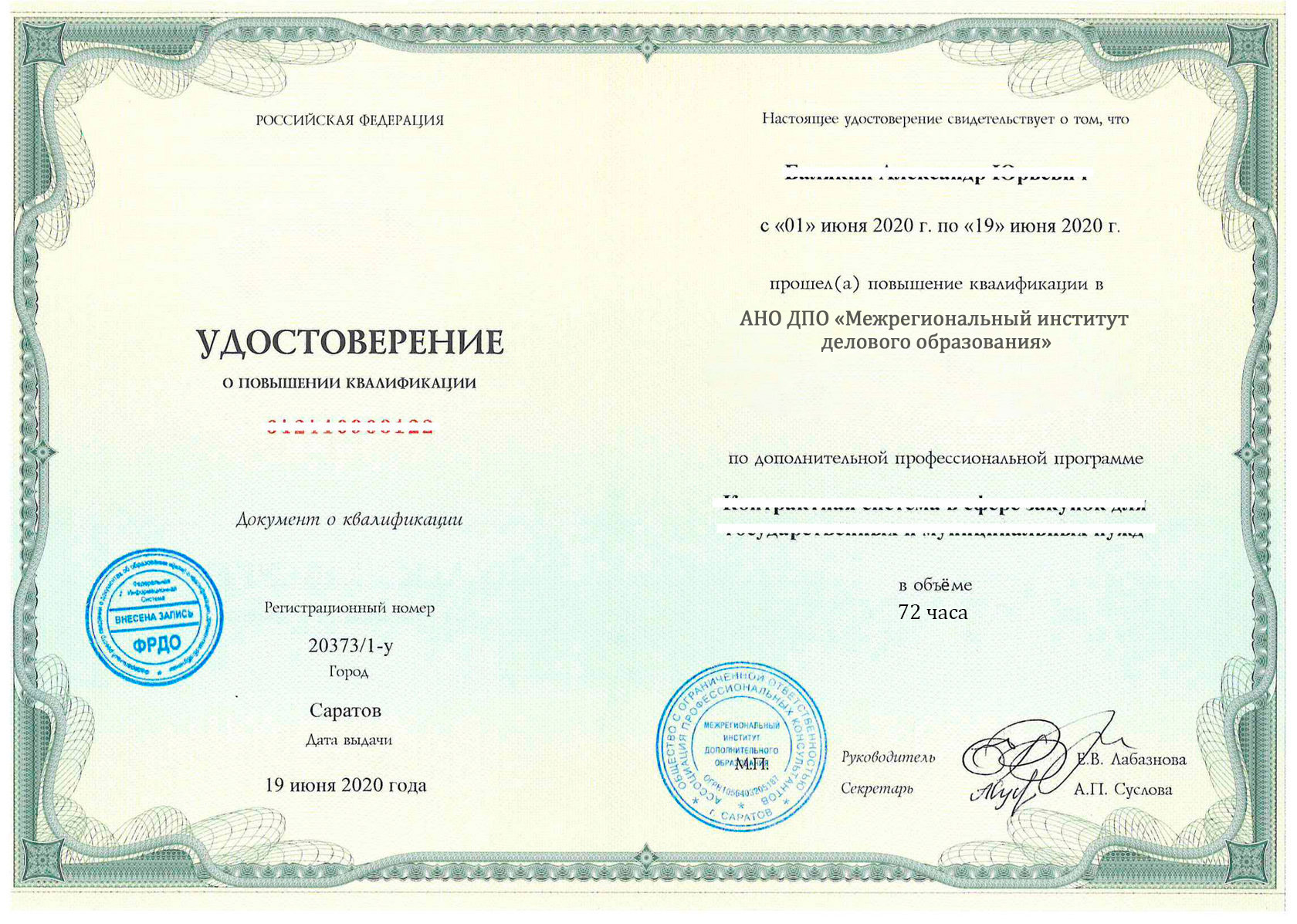 Удостоверение о повышении квалификации с занесением в Федеральный реестр документов об образовании (ФРДО).